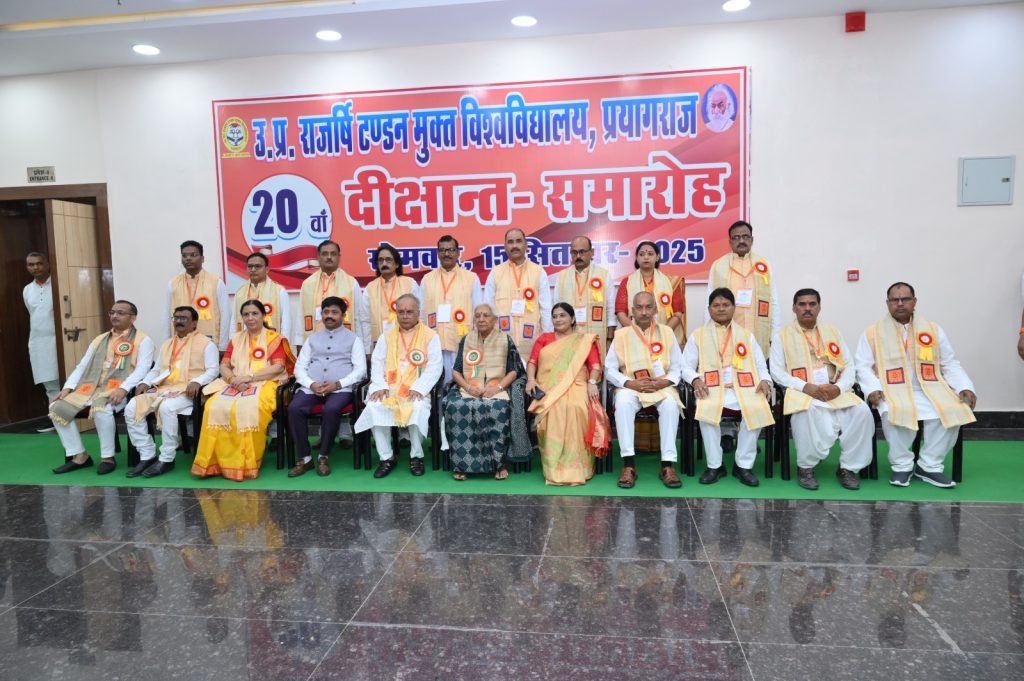 उ0प्र0 राजर्षि टण्डन मुक्त विश्वविद्यालय, प्रयागराज का 20वां दीक्षान्त समारोह सोमवार को सरस्वती परिसर स्थित अटल प्रेक्षागृह में आयोजित किया गया। दीक्षान्त समारोह की अध्यक्षता उत्तर प्रदेश की मा0 राज्यपाल एवं कुलाधिपति श्रीमती आनंदीबेन पटेल ने की।